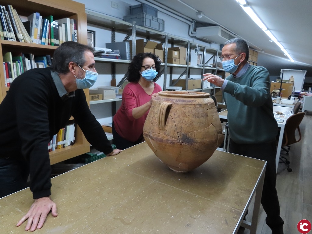 La gerra va ser trobada a linterior duna casa del poblat que havia estat destruïda per un potent incendi que va fer que totes les peces aparegueren molt fragmentades i deteriorades pels efectes del foc. Això ha fet que aquesta excepcional gerra decorada haja perdut una part de la decoració i estiga fragmentada en centenars de trossos. Ara sha conclòs la restauració arqueològica de la peça per part de la tècnica Eva Mendiola amb una subvenció de la Conselleria dEducació, Cultura i Esport. També sha desenvolupat el registre fotogramètric per elaborar una rèplica digital que permetrà reconstruir virtualment l’escena, recerca a càrrec de Patrimoni Digital de la UA. Tot açò, mentre finalitza lanàlisi del vas amb la lectura dels detalls, els parallels i el significat ritual.