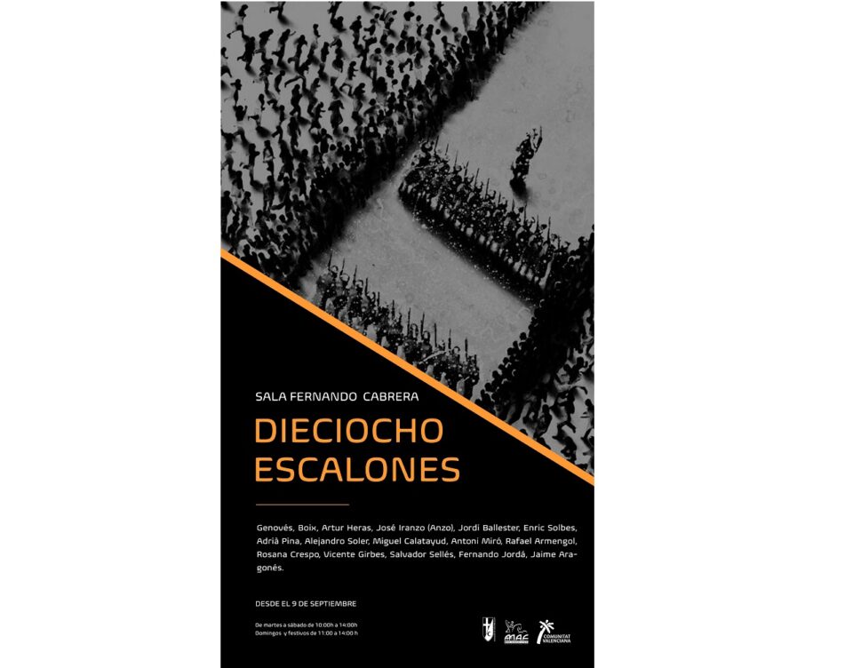 El título de la muestra hace referencia al número de escalones que hacían falta para llegar a su estudio. Dieciocho escalones en los que el olor a pintura anunciaba el lugar donde según él, empezaba TODO. Y dieciocho carteles en total, los que se exhiben en esta exposición.