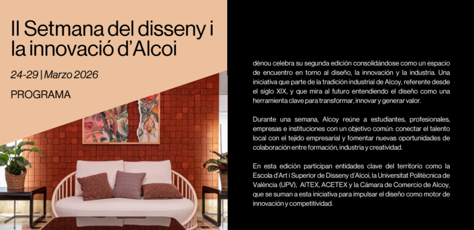 La II Setmana del Disseny i la Innovació reunirà del 24 al 29 de març a Alcoi referents del disseny, la indústria i l’interiorisme