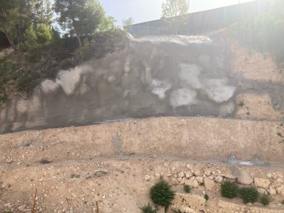 En la zona superior, per a reduir la inclinació i millorar l’estabilitat del vessant, han dut a terme un retalutzat. Finalment per a la consolidació del talús i la seua protecció contra futures inestabilitats han instal·lat ancoratges en la zona talutzada més vertical, així com una malla per a contindre el terreny, que s’ha cobert mitjançant el gunitat.