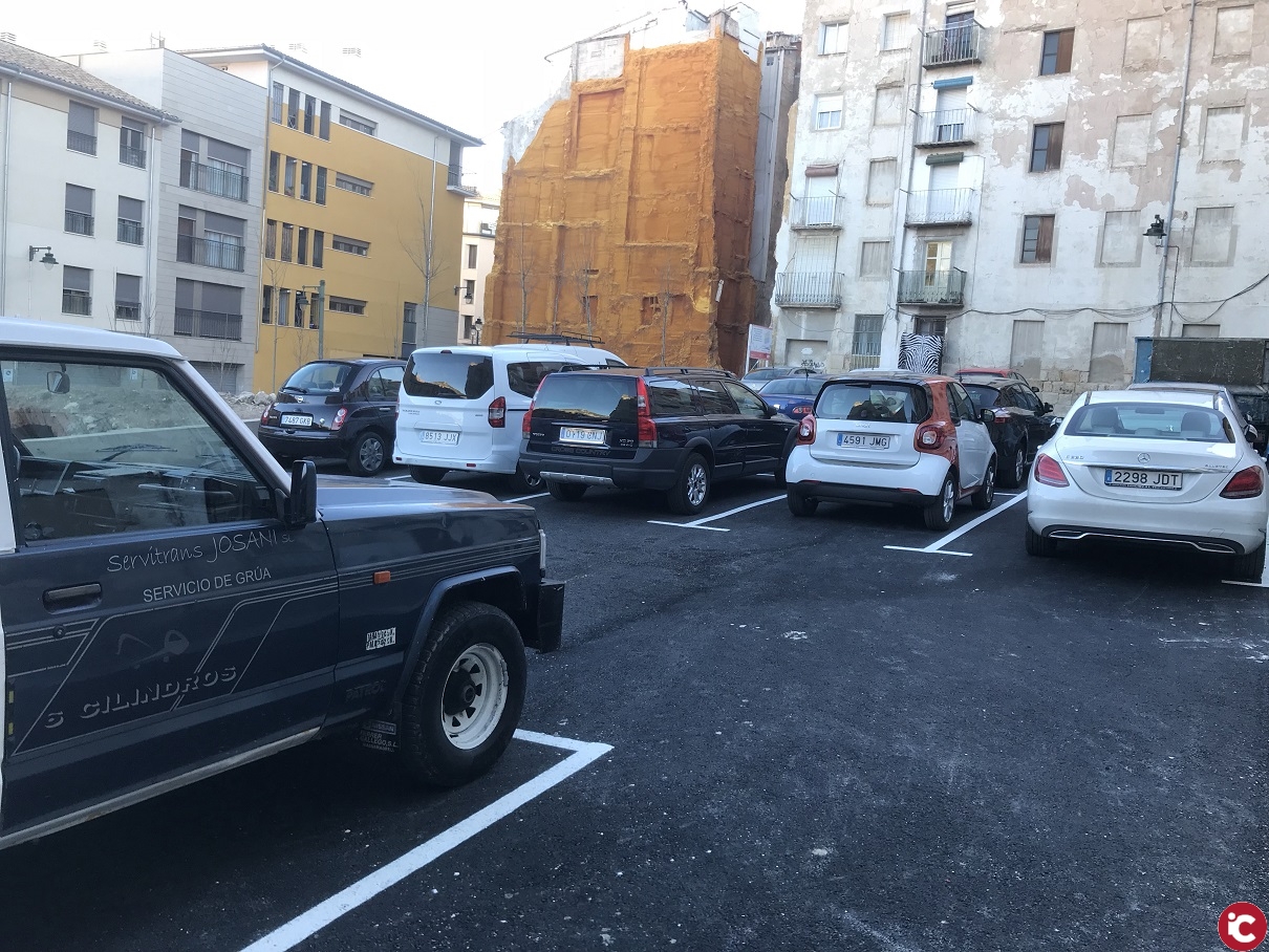 El projecte inclou 19 places daparcament en aquesta zona, concretament en la zona més pròxima al carrer Sant Joan, aquest espai ha estat asfaltat. Pel que fa a la resta del solar sha adequat com zona verda amb el condicionament del sòl i la collocació darbres. Pel que respecte al forn destil morú, es protegirà i rebrà un tractament adequat, aquest és el darrer pas que es farà.