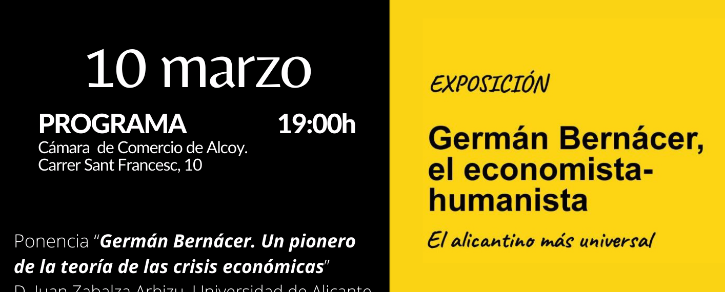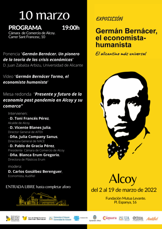 «L’exposició “Germà Bernàcer, l’economista-humanista alacantí més universal” arriba a Alcoi, de la mà del Campus Universitari d’Alcoi i Audifiel, despatxe soci del Fòrum de Debat Econòmic Germà Bernàcer.