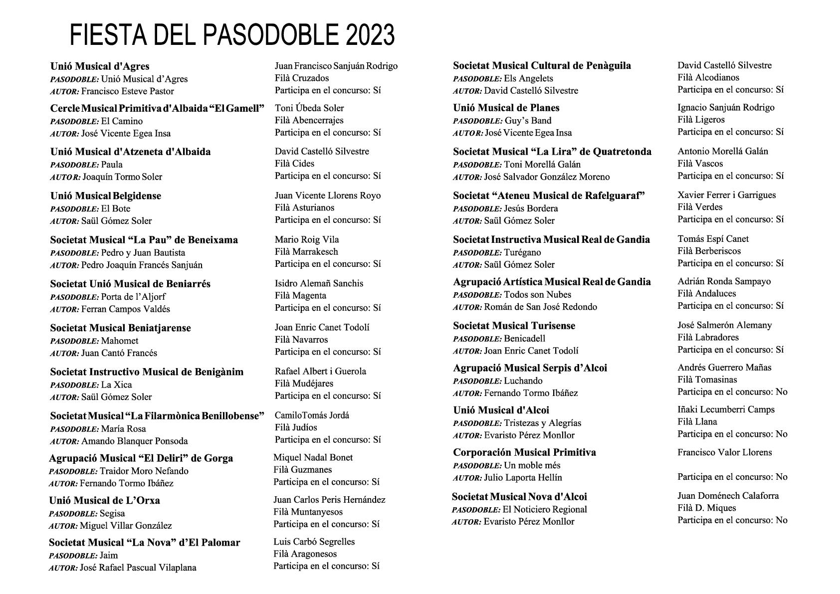 Demà divendres 21 d’abril, Dia dels Músics, comencen les celebracions de vesprada amb la Festa del Pasdoble i el cant de l’Himne que serà dirigit per Silvia Gómez. L’Himne de Festes de Moros i Cristians d’Alcoi, té una música que prové de la marxa àrab «El Sig», extreta de la sarsuela «La Bella Zaida» de Gonzalo Barrachina. La lletra va ser escrita en castellà pel periodista Eugenio Moltó i adaptada al valencià posteriorment pel poeta José Sanz Moya.