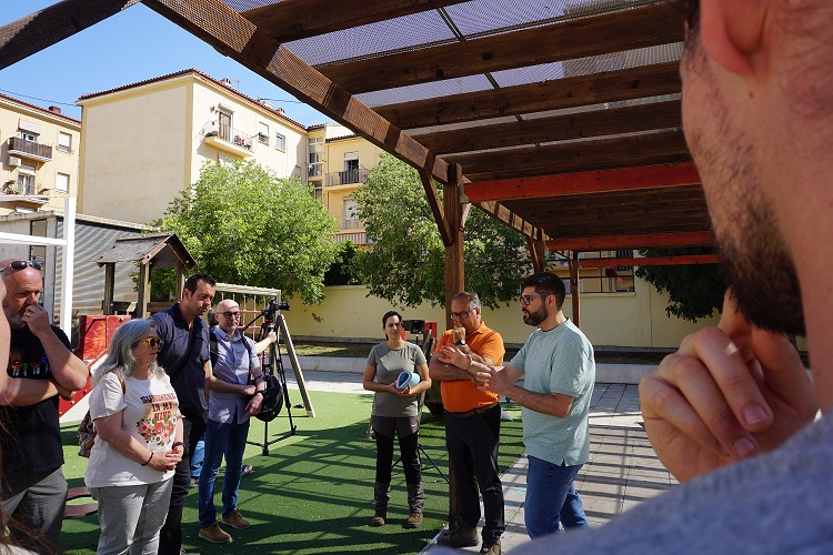 L’equip de treball també va estar en la plaça d’Enric Valor (La Uixola), on s’implantarà l’acció B13, consistent en la redensificació de la zona verda; Així mateix, es van acostar al Barranc del Cint (acció B2), on es restaurarà mediambientalment la zona de brollador i diversos punts d’aigua del Xorrador, així com el tram de barranc urbà que connecta amb La Vaguada.