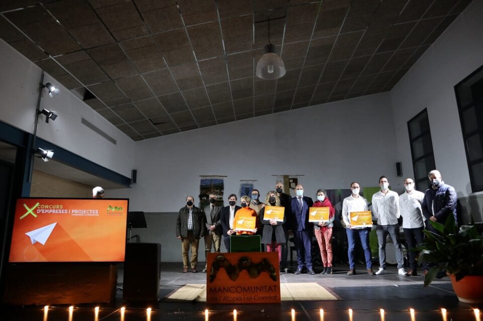 El passat divendres la Mancomunitat de l’Alcoià i el Comtat va entregar els premis del X Concurs d’Empreses i Projectes Empresarials Emprenedors a una gala celebrada en el municipi de Gorga. A l’edició d’enguany s’ha lliurat un total de quatre premis: dos a la categoria de millor empresa i dos a la categoria de millor projecte empresarial.