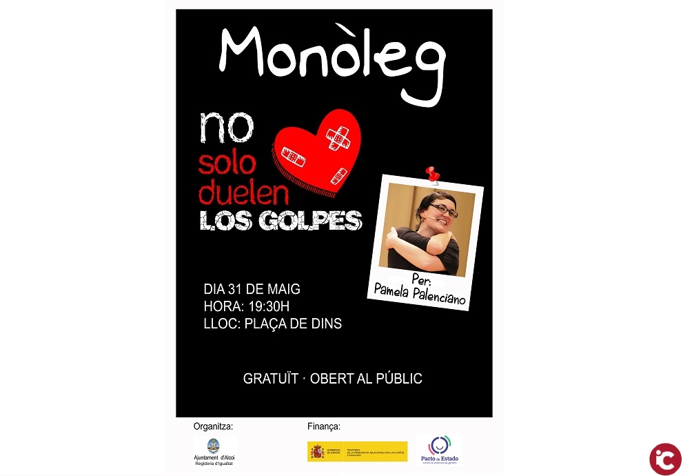 El monòleg «No solo Duelen los Golpes» de Pamela Palenciano és un reflex de les relacions de parella actual i pretén acostar al públic un missatge clar, en paraules de la mateixa protagonista: «lamor no és com ens el van contar, lamor no fa mal». A les 19.30 a la plaça De Dins, aquesta activitat, especialment dedicada a les adolescents i els joves, mostrarà la realitat de lamor, les relacions i la violència a tots aquells que vulguen acostar-se. Un relat pròxim, sincer, esgarrapador i també, divertit, que no deixarà indiferent a ningú.