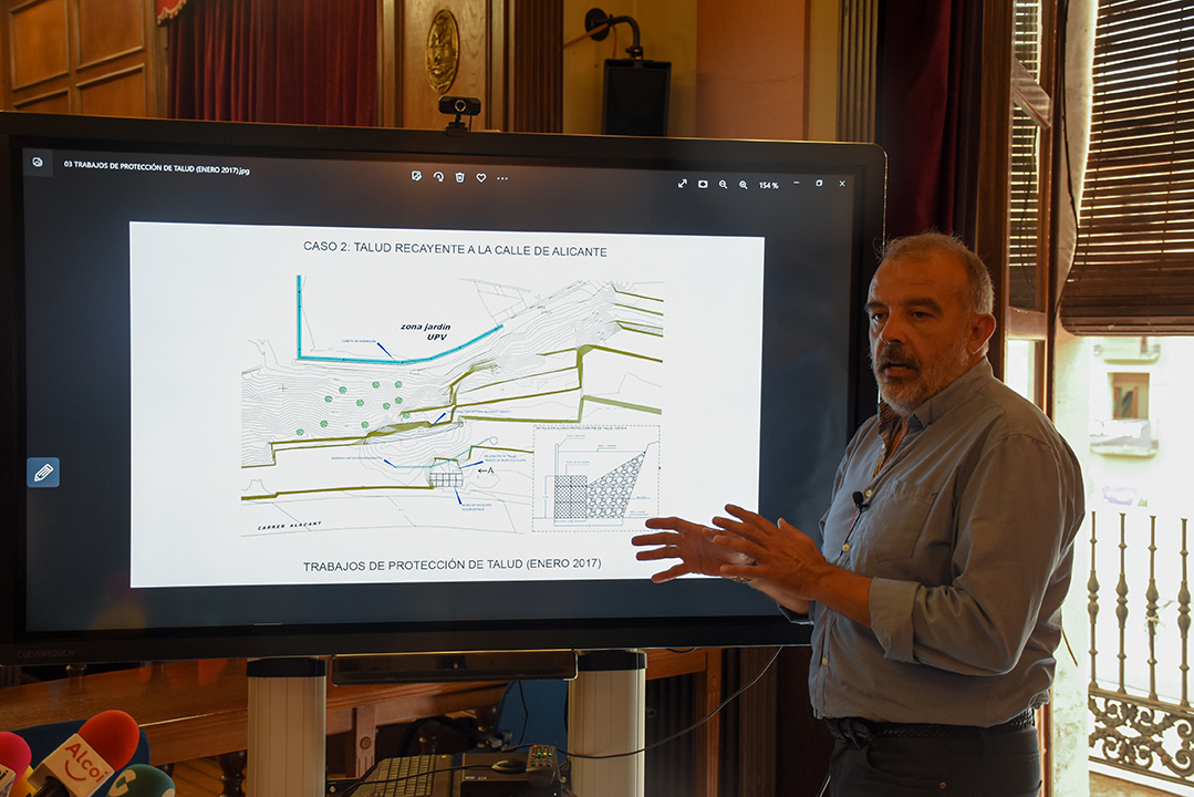 L’Ajuntament d’Alcoi ja ha iniciat el procediment per fer una execució subsidiària per posar una solució que garantisca la seguretat en el vessant de La Beniata. El Consistori considera que és un projecte prioritari i no pot esperar als terminis que indica la Universitat Politècnica de València que és la propietària dels terrenys. El vicealcalde i regidor d’Urbanisme ho ha explicat en roda de premsa.
