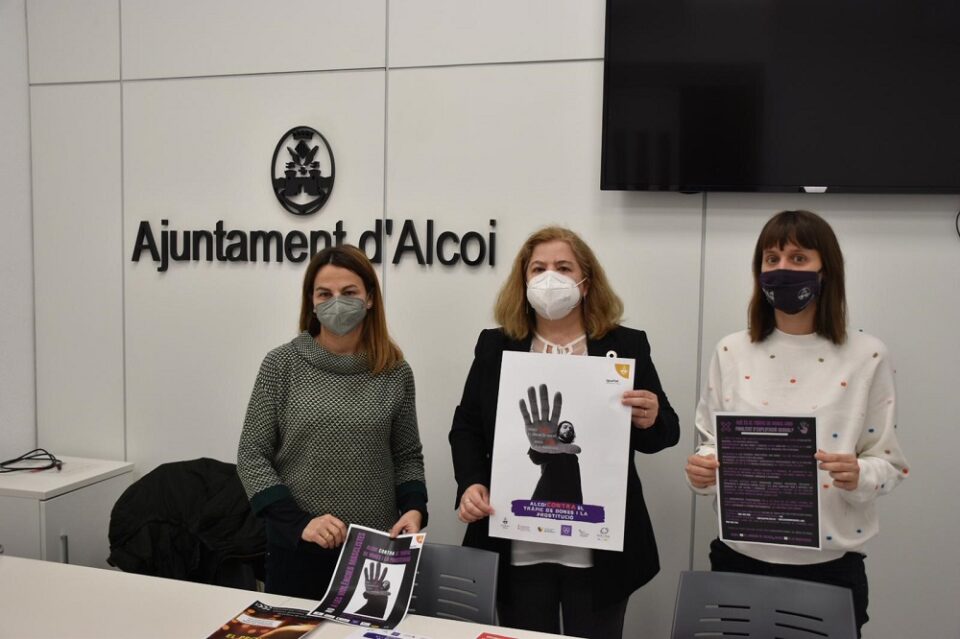 La regidora d’Igualtat, juntament amb les tècniques del Departament, Rut Tomás i Alicia López han presentat la campanya ‘Alcoi contra el tràfic de dones i prostitució’.