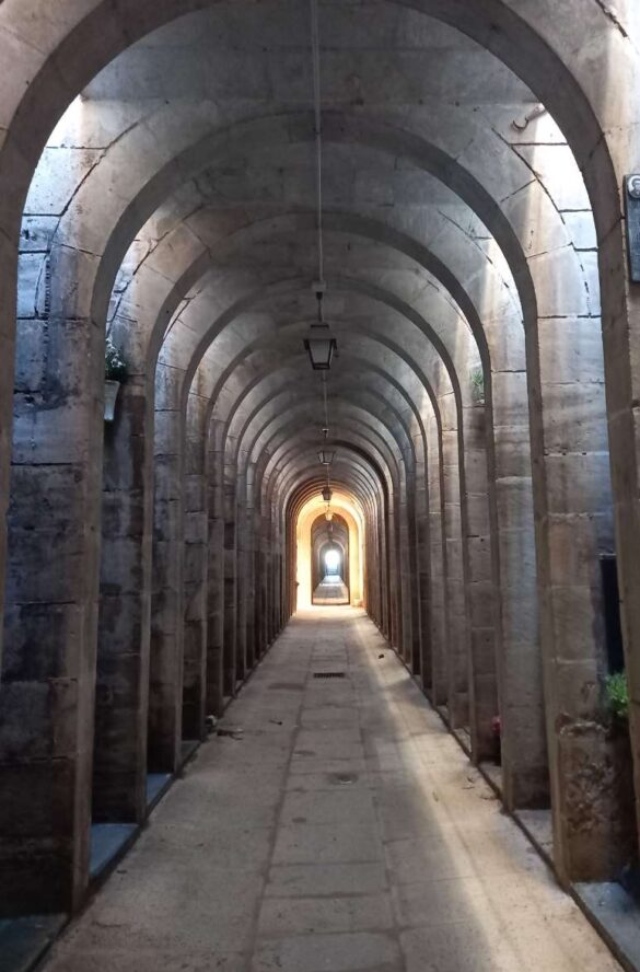 El projecte va presentar una tipologia poc habitual amb la construcció de galeries subterrànies perimetrals semblants a les catacumbes romanes amb nínxols als costats, ben ventilades i amb il·luminació natural. Aquestes construccions aprofitaven el desnivell dels terrenys i van ser construïdes en carreus de pedra blanca, estant formades per successius arcs diafragmàtics en la direcció transversal a l’espai i coincidents amb les columnes de nínxols a banda i banda.
