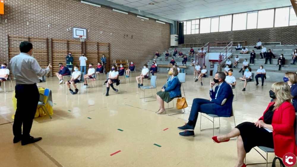 Toni Francés acompanyat pels regidors de lequip de govern Aranza de Gracia, Alberto Belda i Carolina Ortiz, han visitat aquest dijous 27 el Collegi Esclaves SCJ per conèixer aquest projecte sobre la igualtat de gènere.
