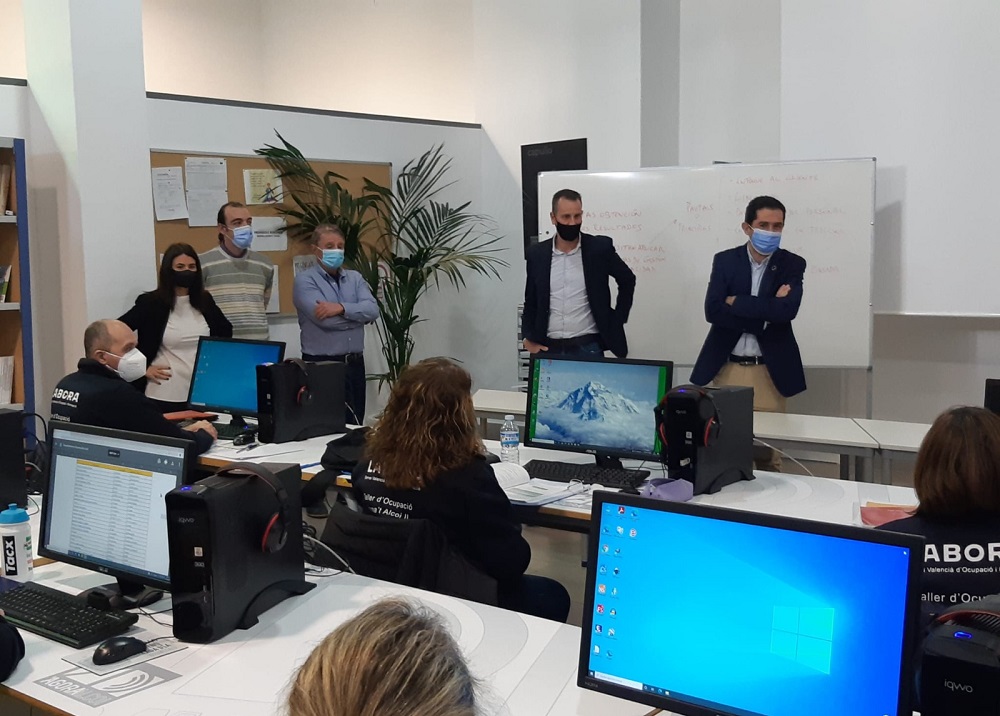 L’alcalde d’Alcoi, Toni Francés i el regidor d’Ocupació, Empresa i Formació, Alberto Belda, han visitat aquest dimarts 15 de febrer el taller d’ocupació que es realitza a Alcoi durant 2022. Es tracta d’un programa concedit pel Servei Valencià d´Ocupació i Formació “LABORA” a l’Ajuntament d’Alcoi, anomenat “Taller d´Ocupació Forma’t Alcoi II” i està comprés per un itinerari formatiu amb dues especialitats: Operacions Auxiliars de Serveis Administratius i Generals (Certificat de Professionalitat de nivell 1) i Activitats Administratives en la Relació amb el client (Certificat de Professionalitat de nivell 2).