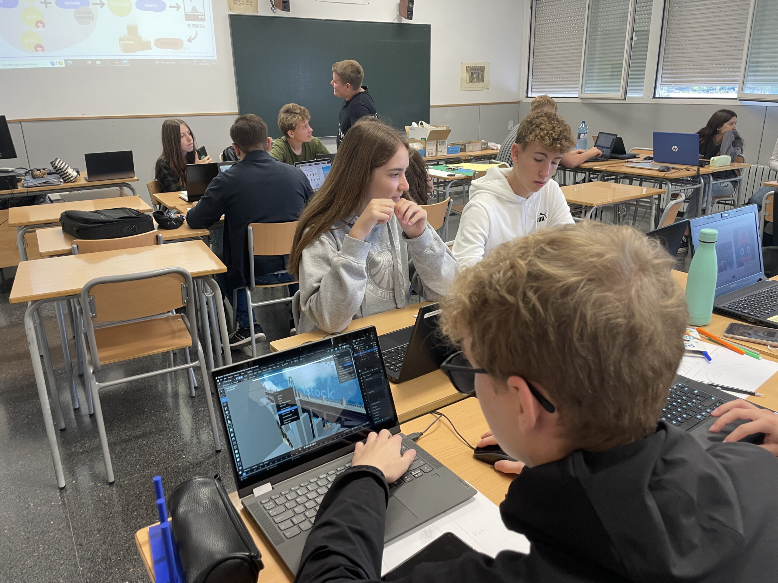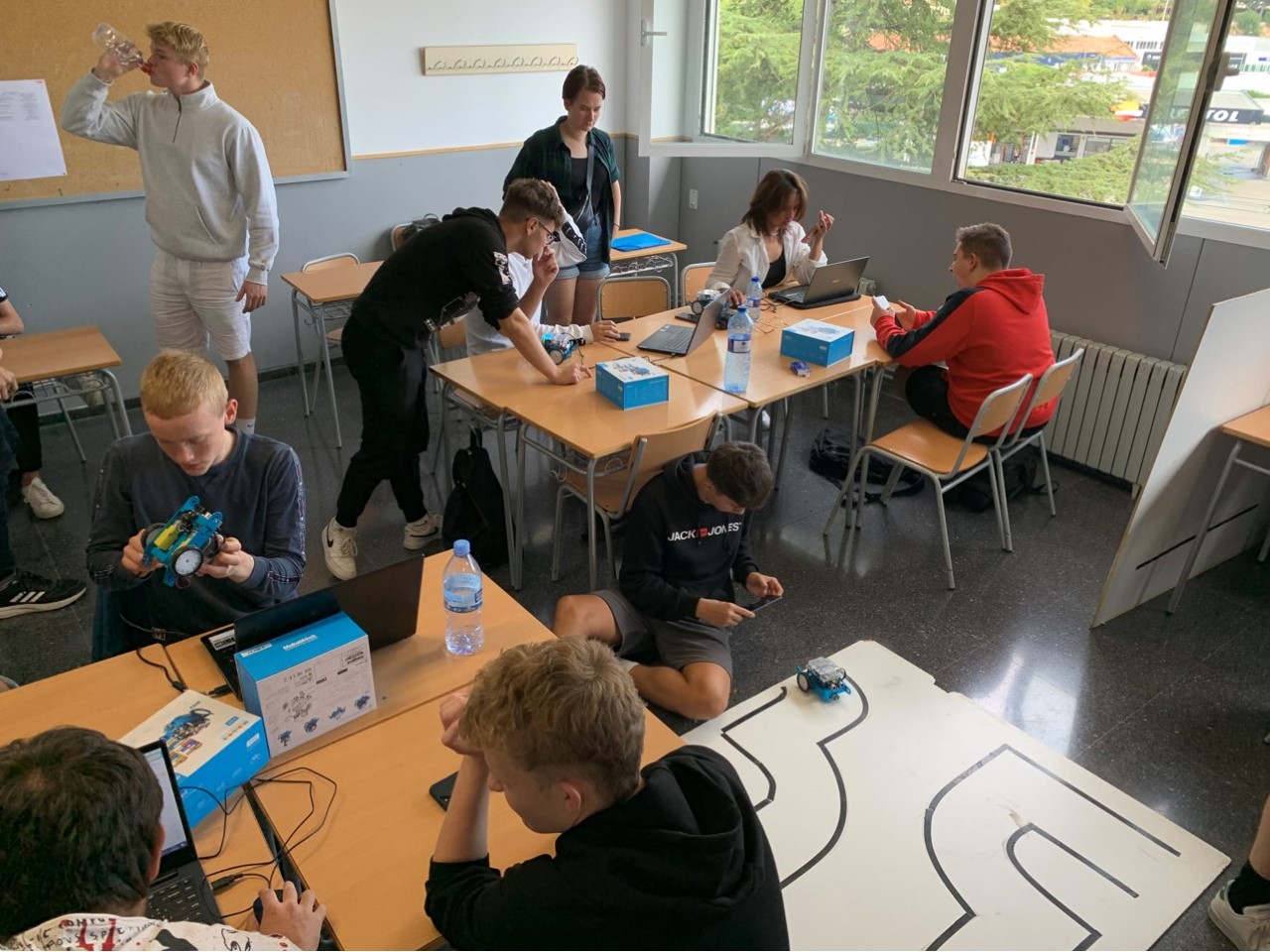 El nou curs escolar s’ha iniciat amb la recepció de 43 alumnes de l’Institut Mercantec, de Viborg, en l’IES Cotes Baixes. Durant quinze dies el grup danés i els alumnes del centre alcoià han treballat la modalitat educativa que combina el Batxillerat i els Cicles Formatius de l’àrea industrial. Per equips, han dut a terme diversos reptes que han unit matèria pròpia de Batxillerat Tecnològic amb especialitats dels cicles formatius de Fusta, Mecanitzat i Automatització Robòtica. Tots ells han sigut coordinats per un equip de professors, danesos i espanyols, que també han après i col·laborat per a dirigir els reptes de manera conjunta. En aquests quatre reptes han aconseguit realitzar, un “souvenir” que represente una característica turística d’Alcoi a través de disseny i impressió 3D, han programat robots i càmeres de visió artificial i han realitzat un aparcabicicletes en fusta; a més de conèixer els llocs més emblemàtics de la ciutat.