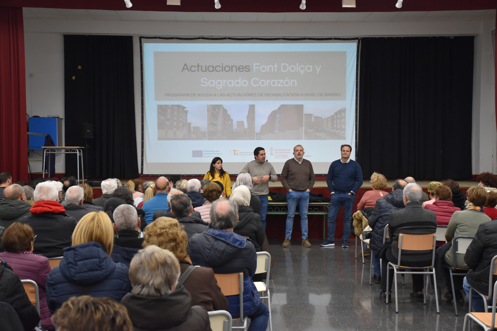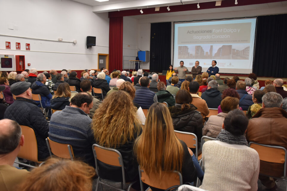 La sala d’actes de l’IES Corts Baixes va acollir en la vesprada d’ahir una reunió organitzada per l’Ajuntament d’Alcoi amb el veïnat de Font Dolça i Sagrado Corazón per a informar-los sobre el procés que el consistori portarà terme a partir de la recent concessió de les ajudes rebudes en matèria d’actuacions de rehabilitació dins del Pla de recuperació, transformació i resiliència 2021-2026. Van assistir més de 150 persones.