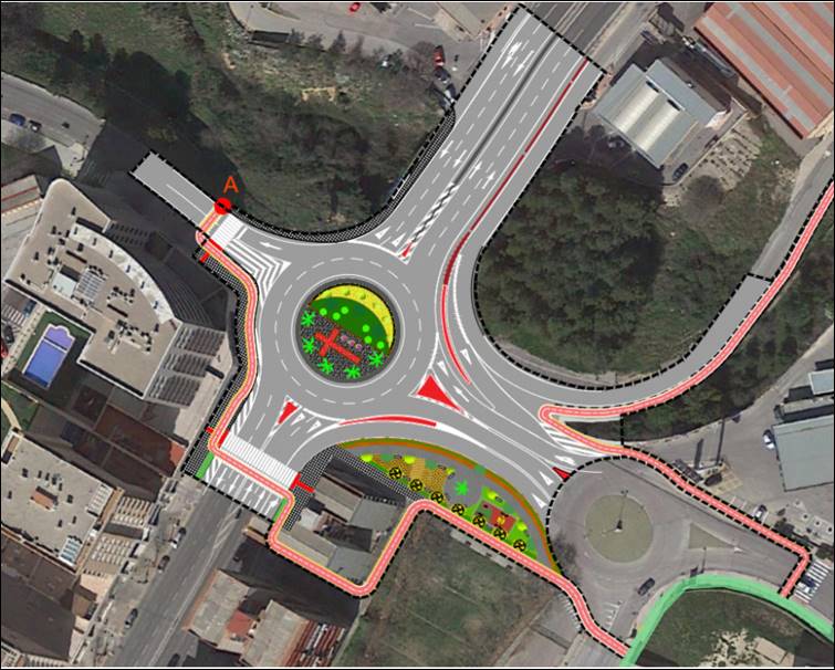 El proyecto tiene por objeto reordenar el tráfico, sustituyendo la intersección giratoria del kilómetro 197,2 por una glorieta. Además, se dotará a todo el entorno de aceras de un ancho mínimo de 1,80 metros y