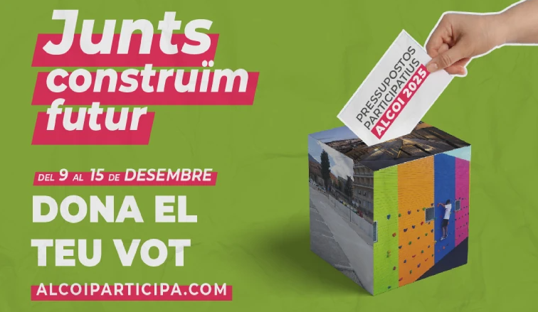 L’Ajuntament d’Alcoi està duent a terme una nova edició dels pressupostos participatius. Després de passar la fase de presentació de propostes, i el procés de recollida d’avals, té lloc el període de votació del dilluns 9 a les 12:00 hores fins el diumenge 15 a les 23:59 hores.
