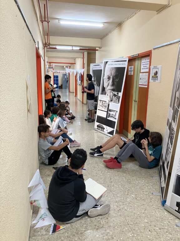 Aprofitant el nou currículum educatiu, i en el marc de la matèria del Projecte Interdisciplinari, l’alumnat de 1r d’ESO prepara una introducció a la vida d’Aura i una contextualització història. Després visitem les aules dels seus companys i companyes de l’ESO, però també de Batxillerat i de la Formació Professional Bàsica, per tal de traslladar la informació i convidar-los a visitar una exposició que està al seu abast als corredors del centre educatiu.