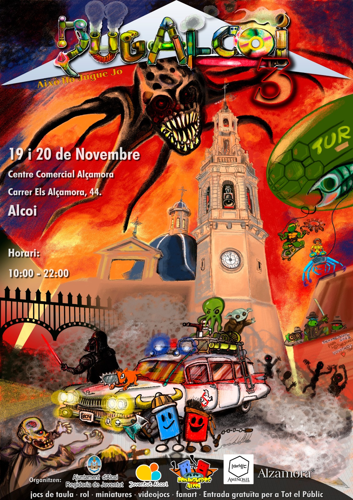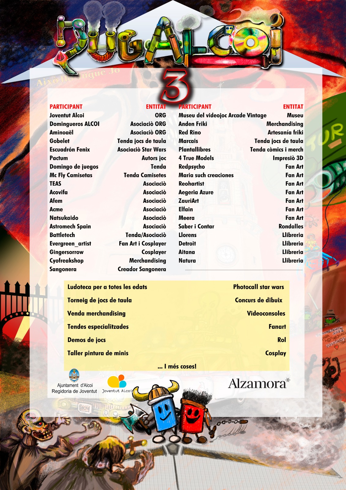 La regidora de joventut María Baca acompanyada per les entitats ‘Domingueros Alcoi’ i ‘ Aminoaël Club de Rol’, han presentat la tercera edició de Jugalcoi que tindrà lloc els dies 19 i 20 de novembre al Centre Comercial Alzamora.