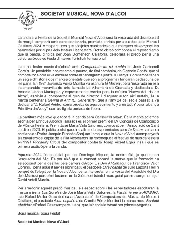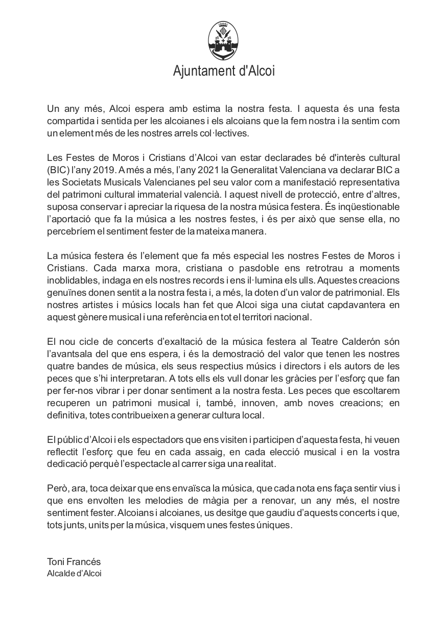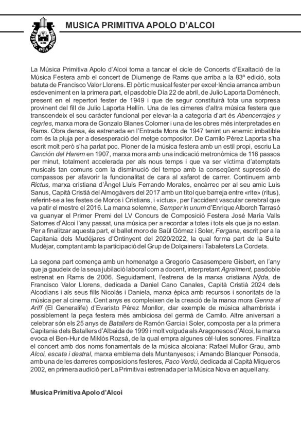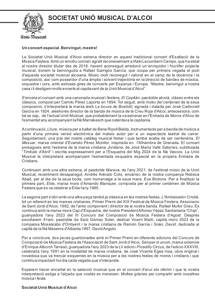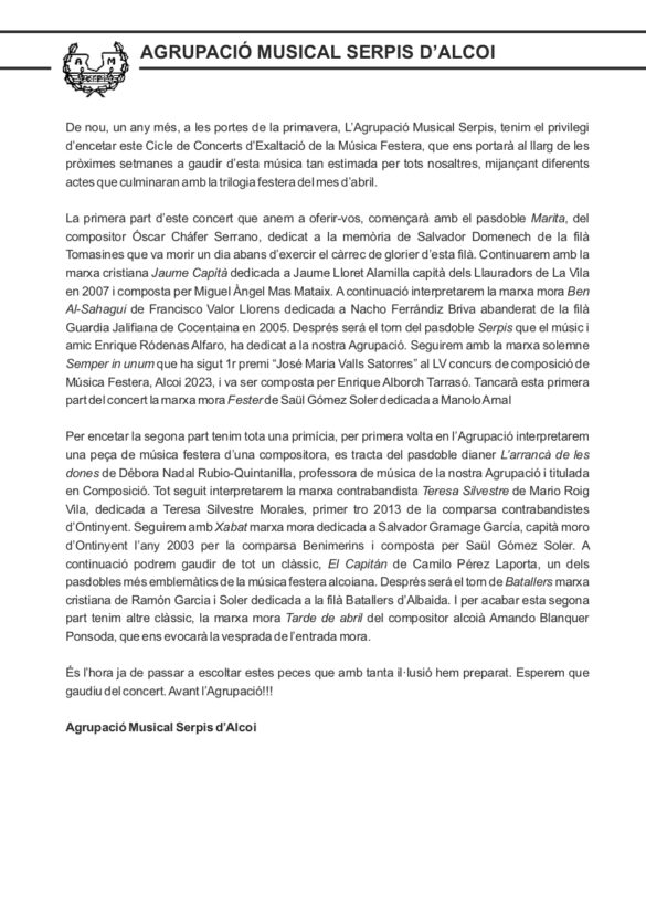 Descarrega’t el programa del cicle de Concerts d’Exaltació de la Música Festera: