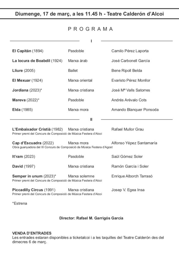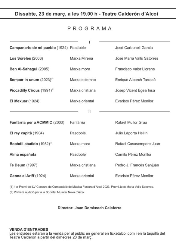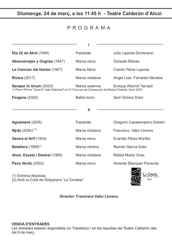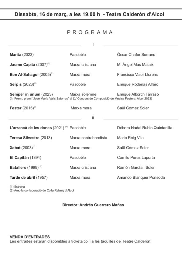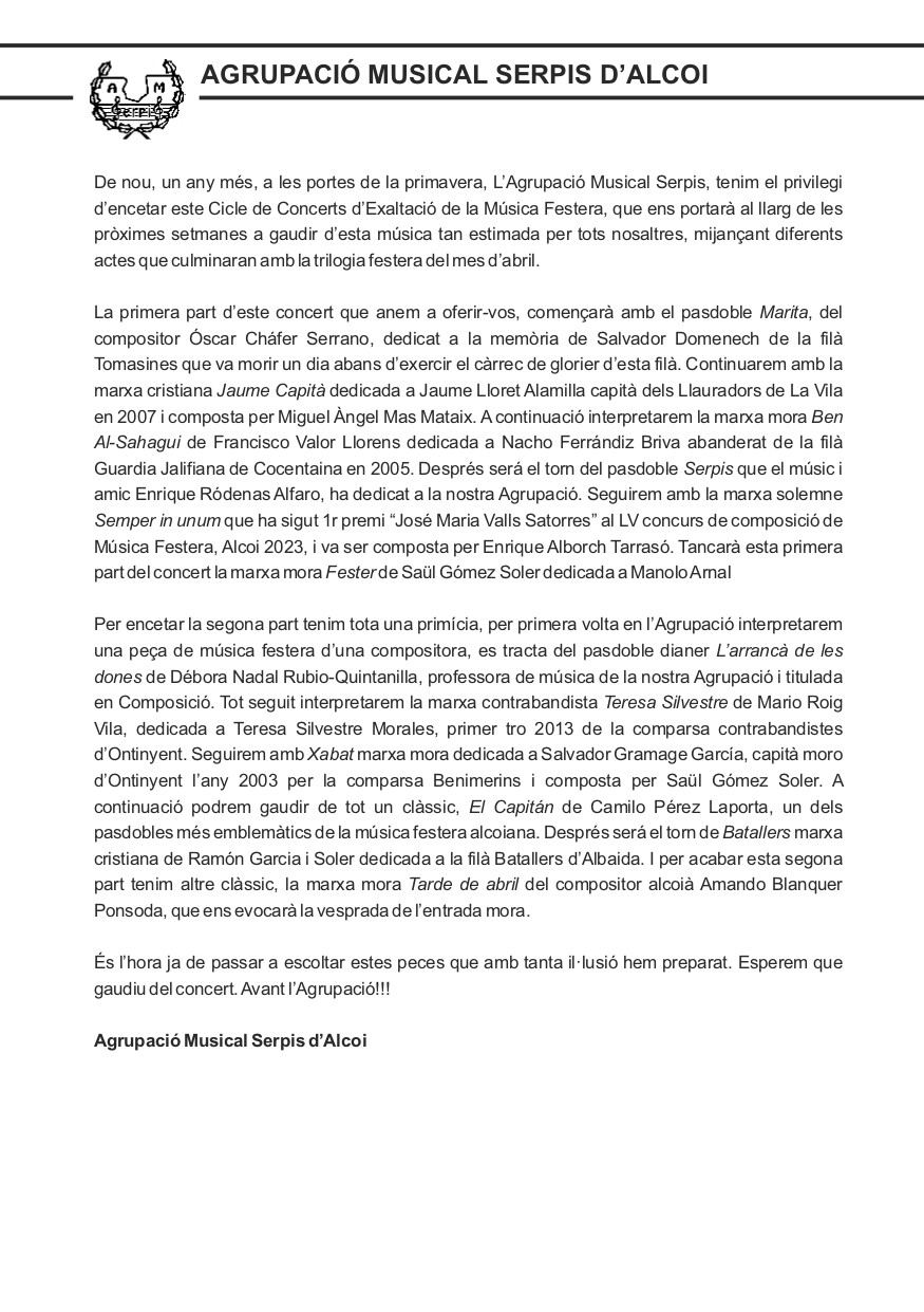 Dissabte 16 de març, a les 19:00 al Teatre Calderón d’Alcoi, l’Agrupació Musical Serpis va iniciar el cicle de concerts d’Exaltació de la Música Festera 2024.