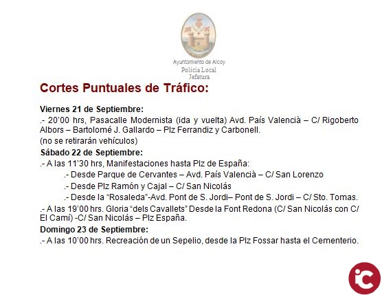 Se comunica a todos los usuarios del Transporte Urbano que, debido a LA SEMANA MODERNISTA, habrán unos cortes de tráfico y desvíos, desde el viernes 21 al domingo 23/09/2018, y que serán los siguientes: