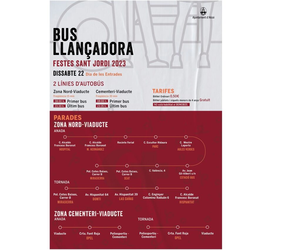 L’Ajuntament d’Alcoi habilitarà el pròxim dia 22 d’abril dues línies d’autobús llançadora que permetran connectar les entrades nord i sud amb el barri del Viaducte, amb l’objectiu de facilitar un any més la mobilitat de tots aquells que visiten la ciutat durant les festes de Moros i Cristians.