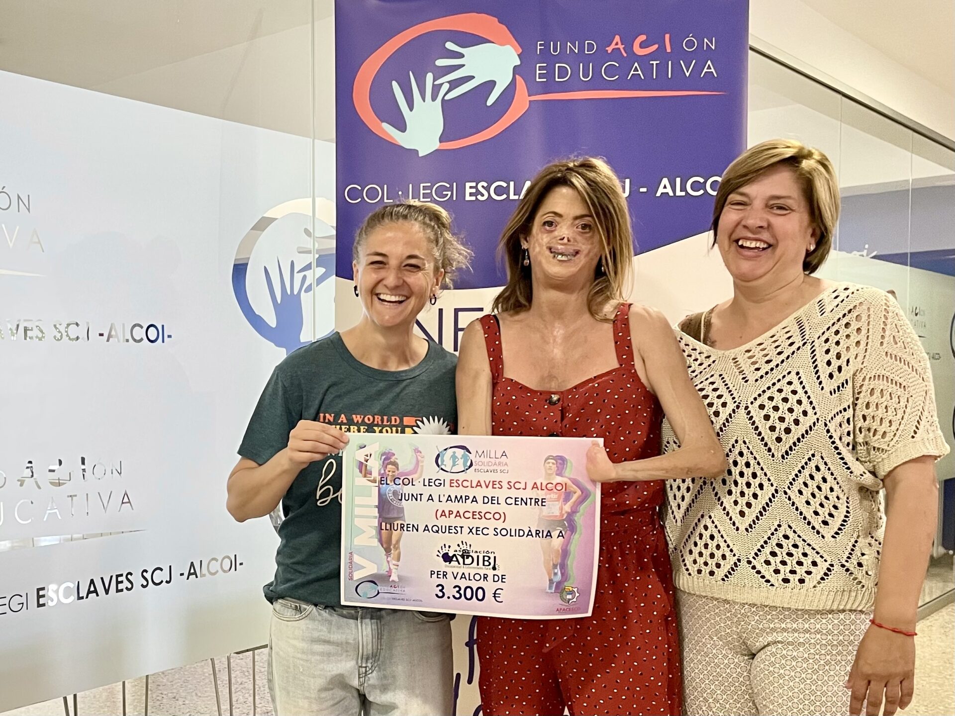 Por ello, esta semana, se hizo entrega a Fide Mirón, Presidenta de Adibi y Vicepresidenta de FEDER, del donativo de la recaudación de la V Milla Solidaria Esclavas SCJ Alcoy.