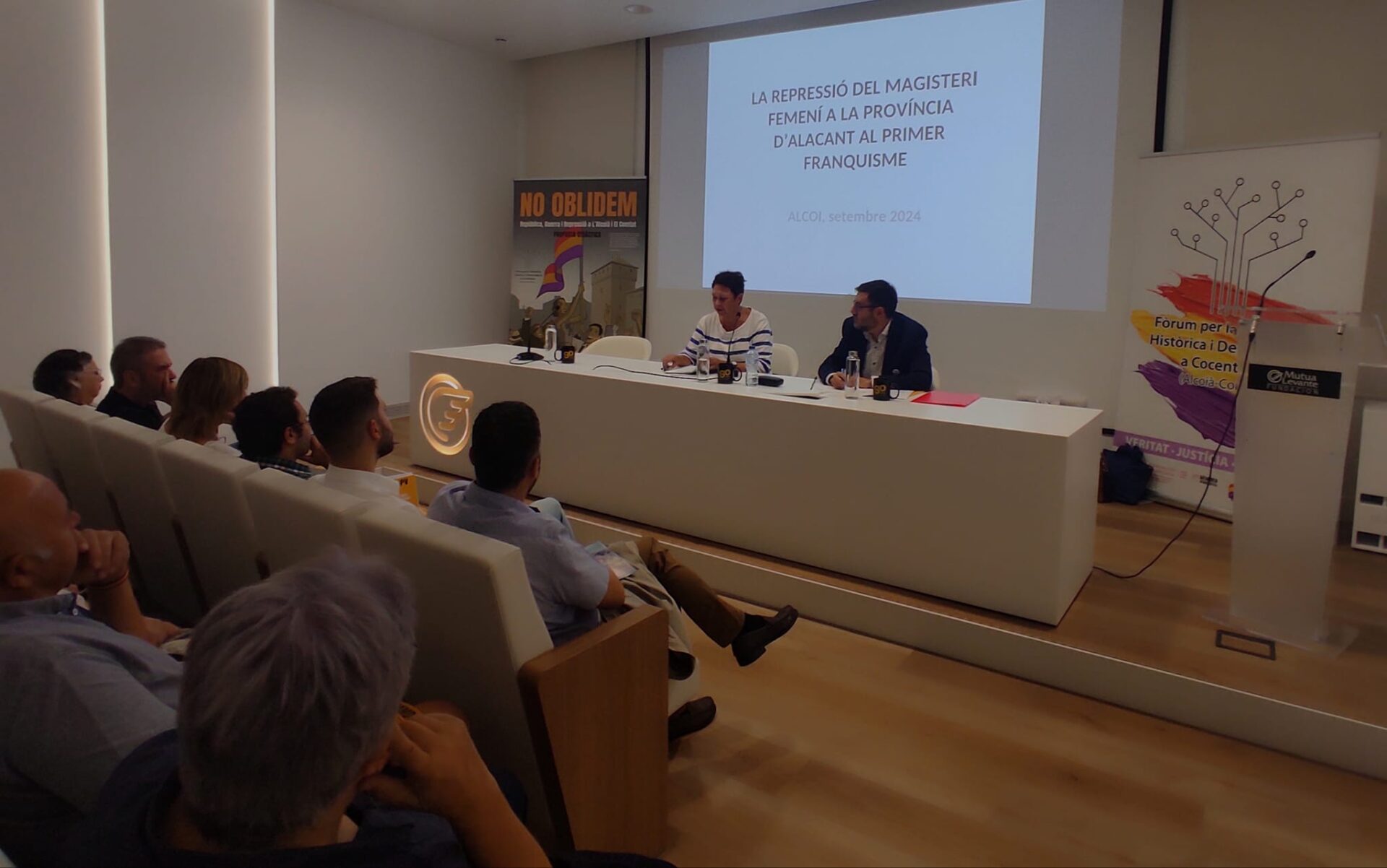 Les III Jornades per la Memòria Democràtica a l’Alcoià i el Comtat ja han estat inaugurades amb èxit. Aquesta tercera edició de la iniciativa del Fòrum per la Memòria Històrica i Democràtica a Cocentaina (FMHiD) va omplir el passat 18 de setembre la sala de la Fundació Mútua Levante amb un aforament més que complet. Enguany dedicades als i les mestres que van impartir docència però també van ser més que dinamitzadors socials en una immensa quantitat de municipis de l’Estat, aquestes jornades han despertat l’interés dels veïns d’aquestes comarques que ahir van assistir a la primera activitat del programa, la