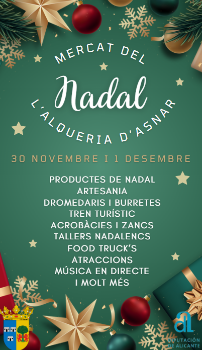 El Mercat de Nadal de l’Alqueria d’Asnar promet ser l’esdeveniment perfecte per a donar la benvinguda a la temporada nadalenca, reunint tradició, espectacle i comunitat en un ambient màgic i festiu. No t’ho perdes!