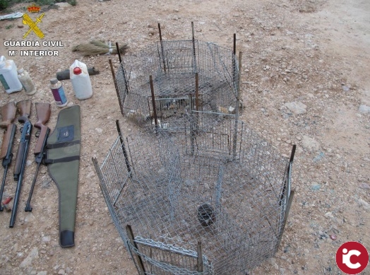 la parcela, encontraron numerosas artes prohibidas para la caza tales