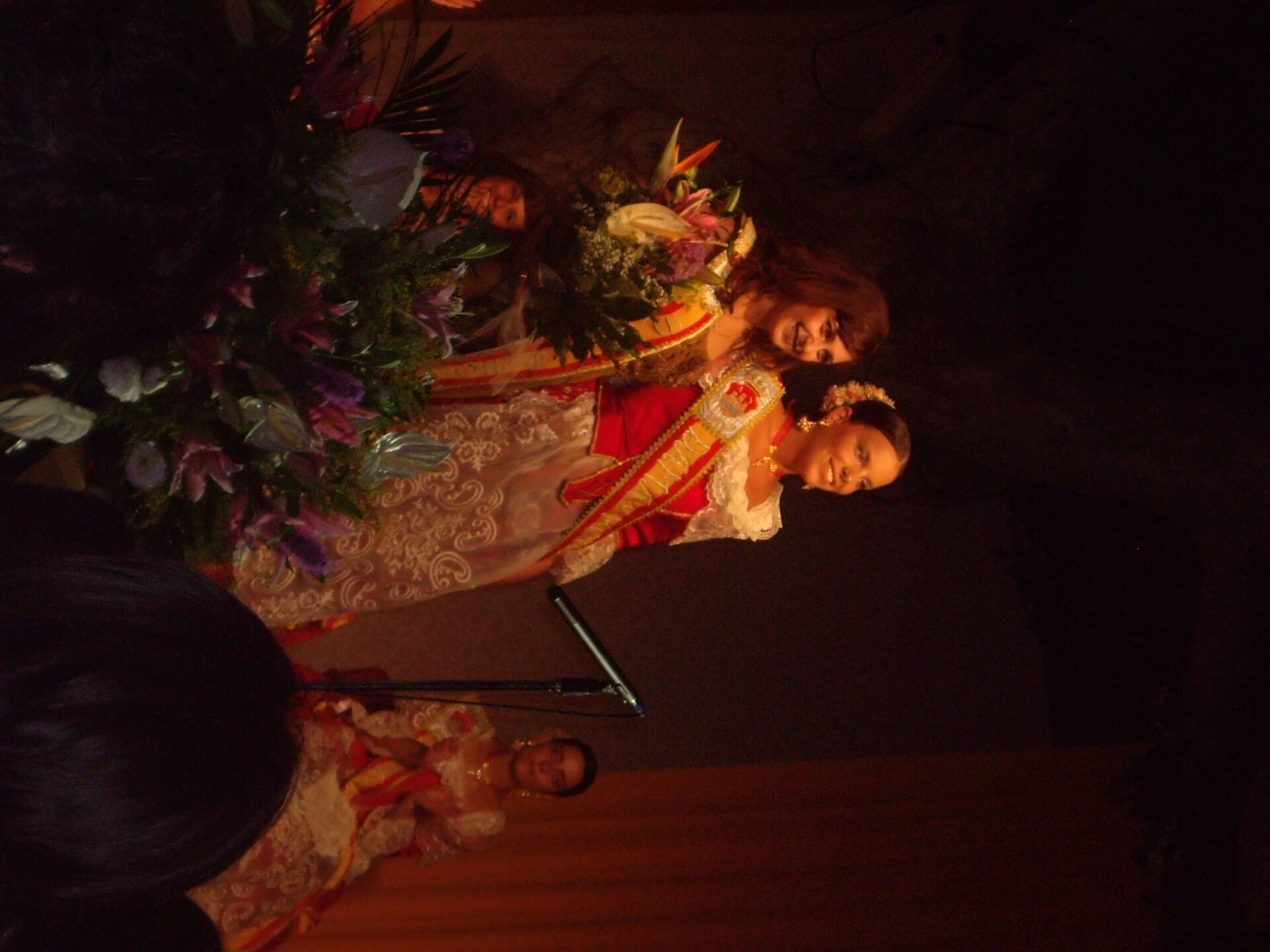 Las Damas salientes haciendo gala de espontaneidad rompieron el protocolo solicitando la presencia en el escenario de la Alcaldesa Nieves Martínez y del Concejal de Fiestas Oscar Planelles para entregarles sendos regalos como despedida.