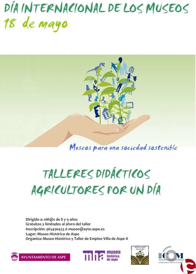 Aspe, 15 de mayo.- El Museo Histórico de Aspe (MHA) se suma a la conmemoración de la 37 edición del Día Internacional de los Museos que se celebra esta edición bajo el lema de Museos para una sociedad sostenible, que tendrá lugar en todo el mundo el próximo 18 de mayo.
