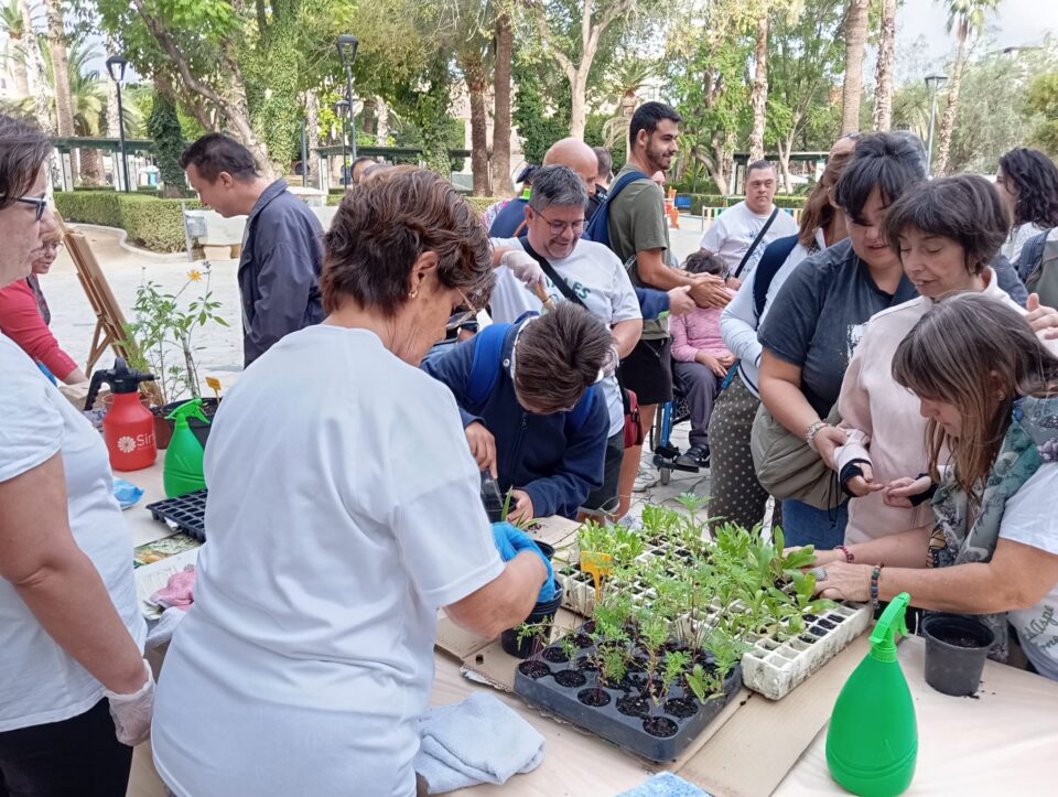 Esta mañana, el Parque Dr. Calatayud ha sido el escenario del acto principal en conmemoración del Día Mundial de la Salud Mental, donde la Asociación Iguales ha llevado a cabo una actividad para concienciar sobre la importancia de prevenir y cuidar la salud mental. Bajo el lema «Planta con nostr@s», se ha realizado un taller de jardinería con el objetivo de visibilizar el trabajo que la asociación realiza con las personas afectadas por trastornos mentales.