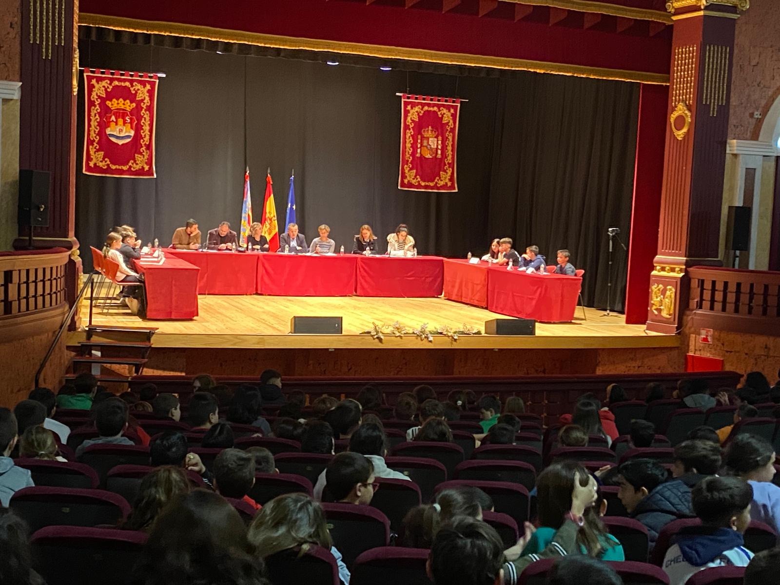 El alumnado de sexto de primaria de los centros escolares ha participado hoy en el Pleno Escolar por el Día de la Constitución celebrado en el Teatro Wagner