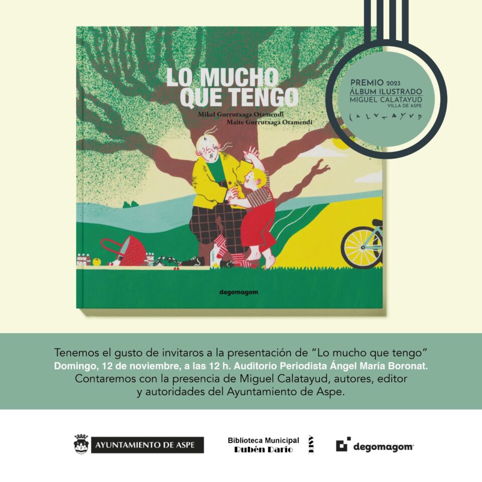 El 12 de noviembre a las 12h en el Auditorio Ángel María Boronat se celebra la entrega del Premio de Álbum Ilustrado Miguel Calatayud Villa de Aspe 2023.