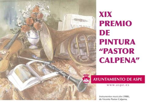 El Ayuntamiento de Aspe, a través de la concejalía de Cultura, acaba de convocar el XIX premio de pintura «Pastor Calpena», nuevamente de ámbito nacional. Por si resulta de su interés, le remito las bases y sus fichas de inscripción al tiempo que le anuncio que estos documentos también se encuentran en la página web www.aspe.es. Le esperamos.