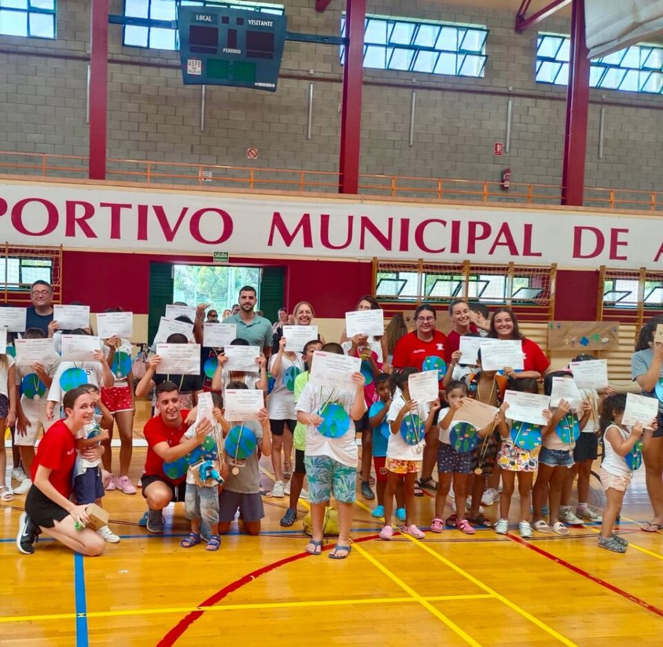 Se ha realizado en el pabellón Municipal de Aspe , la finalización de la escuela de verano socioeducativa de SS.SS. con la entrega de diplomas y medallas , donde 50 niños, niñas y adolescentes han participado en dicha actividad . Contando con los familiares y con la presencia de Toñi García Morote ( concejala de SS.SS.) y Daniel Aguilar Puche (concejal de deportes, juventud e infancia ).