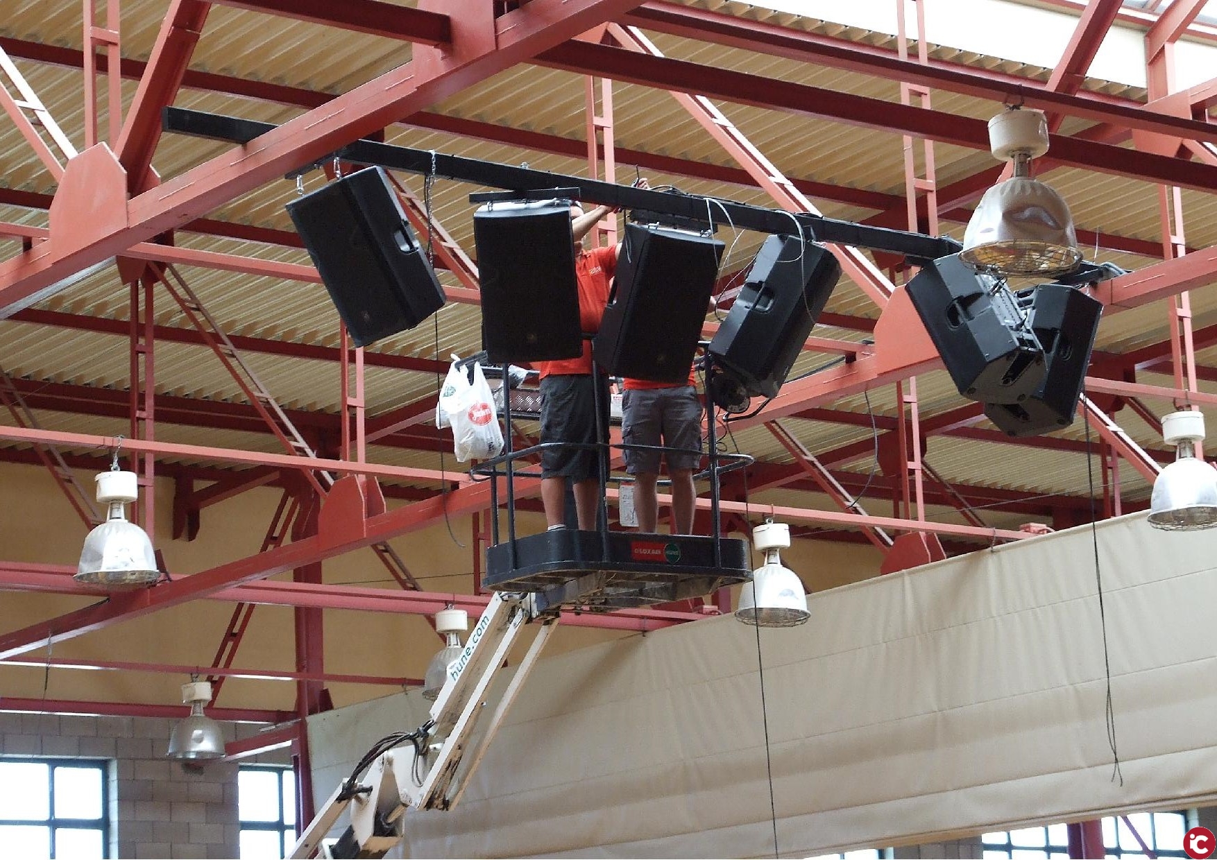 Estas dos últimas semanas también han servido para dotar al pabellón con un nuevo sistema de sonido, mejorando notablemente la calidad y potencia del actualmente existente. Seis bafles de 400 vatios cada uno de ellos se han distribuido por la estructura de la cubierta, con la posibilidad de regularse desde cualquier zona de la pista a través de un mezclador rack y otro de microfonía, evitando así las operaciones de montaje y desmontaje en cada ocasión que se realice un evento especial. Estos trabajos se han ejecutado siguiendo un minucioso estudio realizado por una empresa especializada del sector. Tanto en el caso de la iluminación como en el del sonido, los técnicos de la Concejalía de Deportes han conseguido compaginar la ejecución de los trabajos sin afectar a la actividad habitual de los usuarios de las instalaciones deportivas municipales.