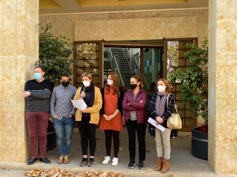 Miembros de la Corporación Municipal de Aspe se han concentrado ante las puertas del Ayuntamiento para mostrar manifestar su rechazo y repulsa ante este caso de violencia machista.