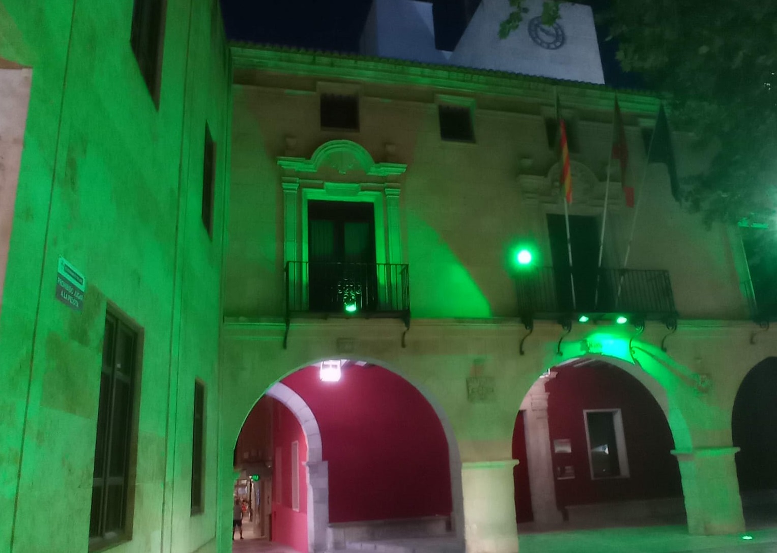 El Ayuntamiento de Aspe ilumina la fachada de la Casa Consistorial en color verde para visibilizar el Día Mundial de la lucha contra la Esclerosis Lateral Amiotrófica (ELA)