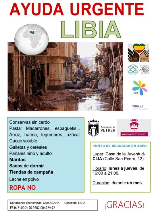 El Ayuntamiento de Aspe promueve la solidaridad con Libia y la Asociación  Grupo Abril