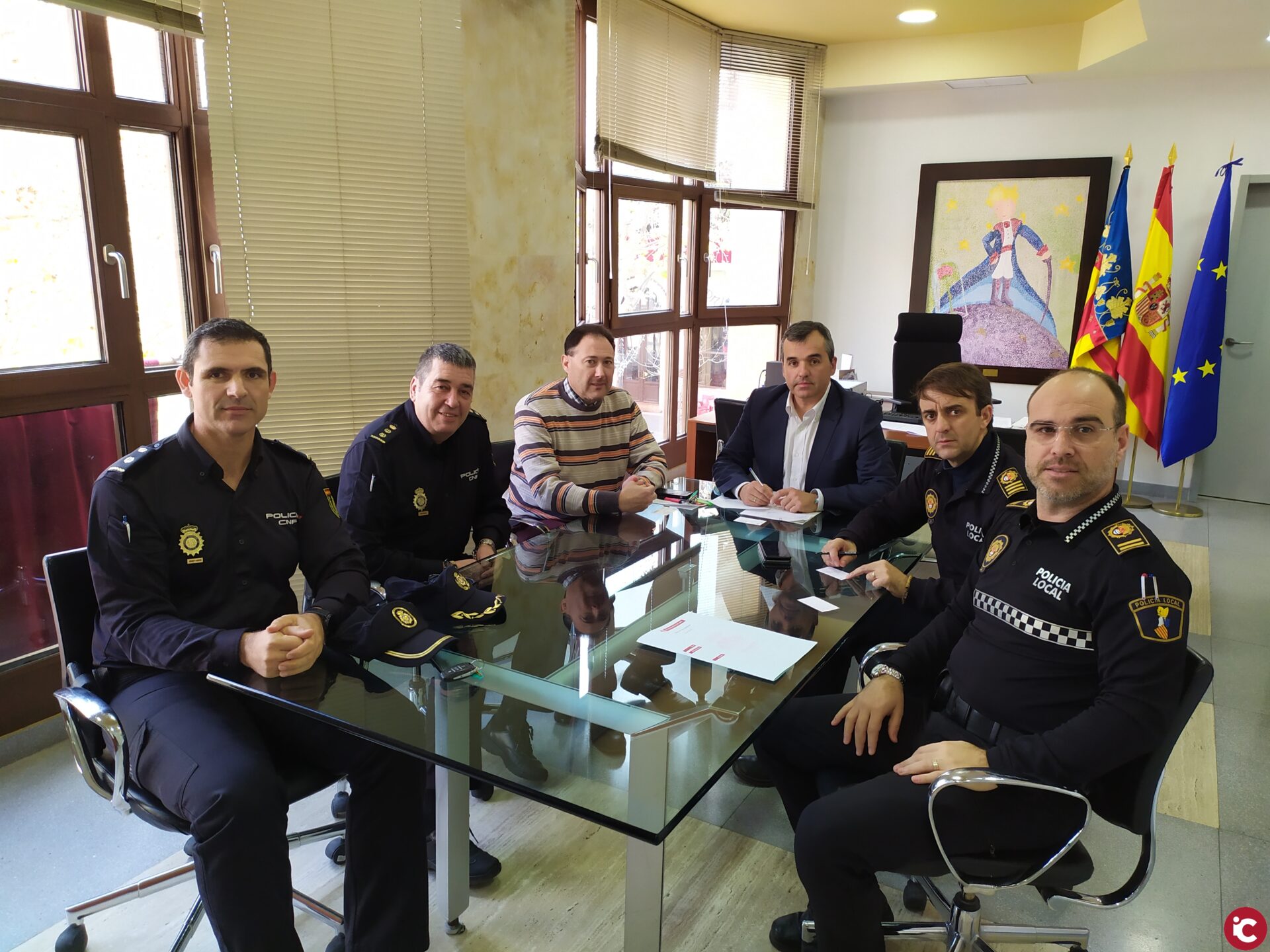 El alcalde, Antonio Puerto, y los responsables de la Policía Local se reúnen con el Comisario-Jefe de la comarca