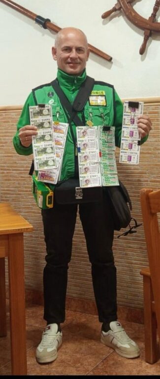 El vendedor de la ONCE Miguel Ángel Mejias López es quien ha llevado la suerte a Aspe con estos 700.000 euros que ha repartido desde su ruta de venta en la Calle Antonio Machado, Restaurante La Casita y “El Juanico”. Miguel Ángel es vendedor de la ONCE desde diciembre de 2023 adscrito a la Agencia de la ONCE en Elda.