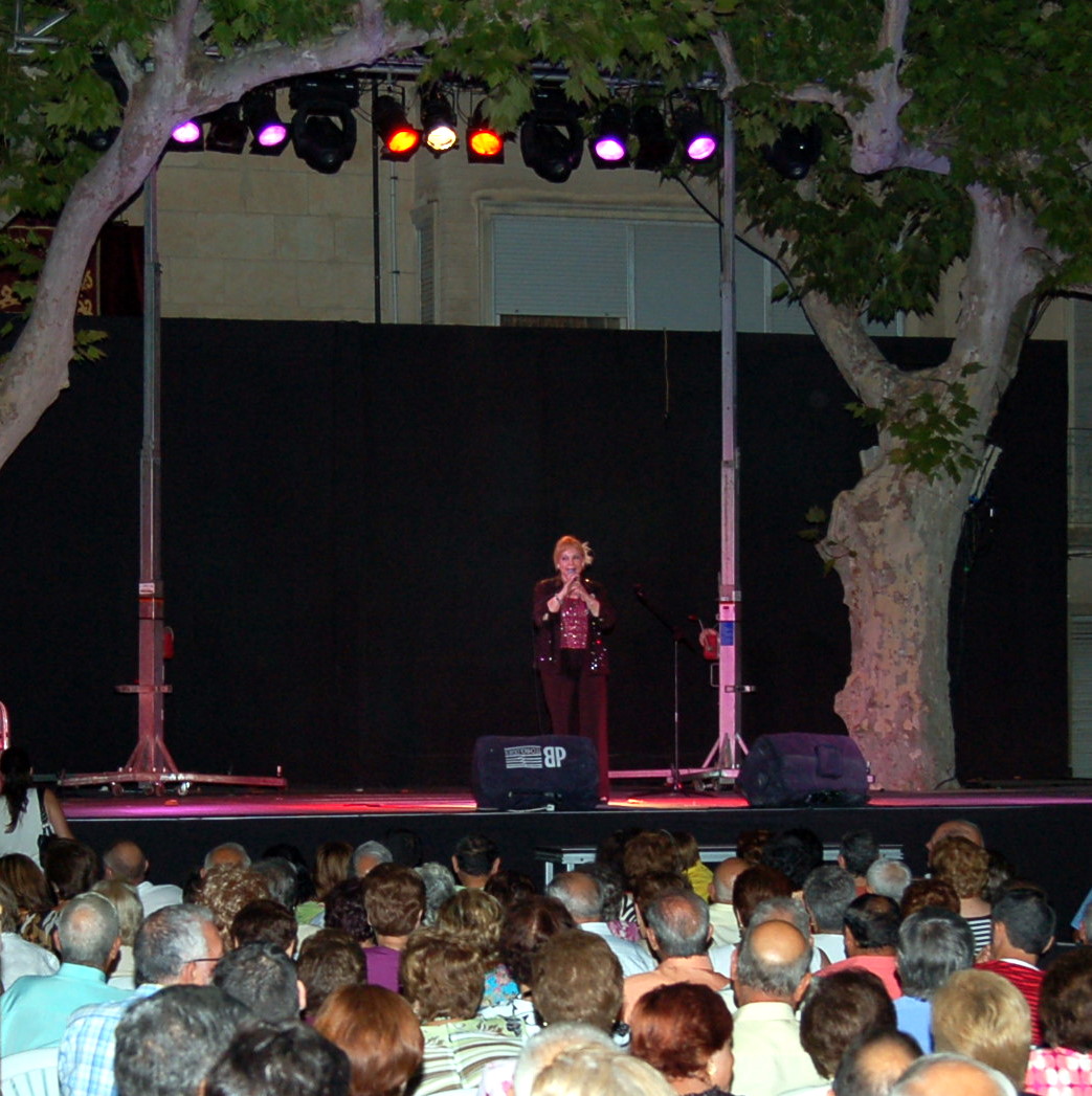 María Isabel Llaudés Santiago, popularmente conocida como Karina, arrasó con su actuación en la localidad aspense, pues el aforo de la Plaza Mayor quedó rebasado por completo: muchos asistentes se quedaron de pie, otros sentados bajo los soportales del Ayuntamiento, cualquier sitio era bueno para poder escuchar su melódica voz, a la par que todo el mundo aplaudía, cantaba, la arropaba y disfrutaba del concierto en todos los sentidos.