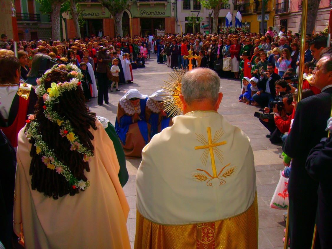13.00 h. PLAZA MAYOR: Representación de las Cortesías del Domingo de Resurrección (En este caso no se realizarán al Santísimo Sacramento, sino que las recibirá la imagen del Cristo Resucitado. Las cortesías serán realizadas por la Guardia Pretoriana, las imágenes de San Juan y Santísima Virgen María y la representación viviente de las Marías y la Magdalena)