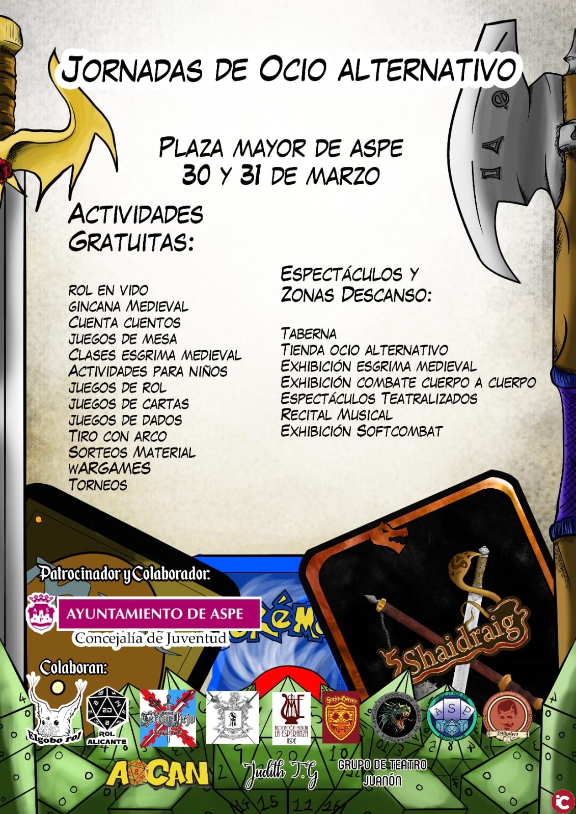 El sábado 30 y Domingo 31 de Marzo tendrá lugar en la Plaza Mayor de Aspe unas jornadas de ocio alternativo, organizadas por la Concejalía de Juventud.
