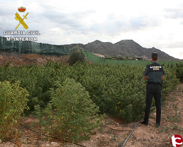 Tras tener conocimiento de la posible existencia de una plantación de marihuana en la localidad de Aspe, agentes de la Benemérita se personaron en el lugar, hallando un cultivo ilegal en una parcela, del que se intervienen 455 plantas de marihuana.