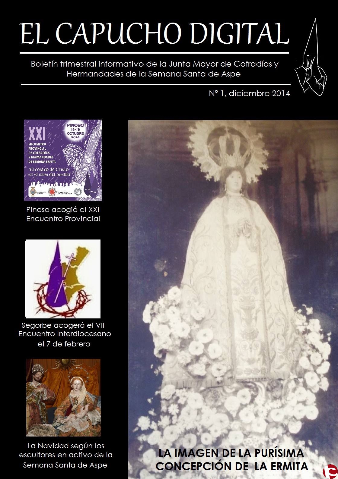 El primer número, correspondiente con el mes de diciembre de 2014, ya está disponible y cuenta con información acerca de las actividades con motivo de la Navidad, el pasado Encuentro Provincial en Pinoso y el próximo Encuentro Interdiocesano en Segorbe o un artículo sobre la relación de la antigua imagen de la Purísima Concepción de la Ermita y la Semana Santa entre otros contenidos.