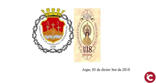 Desde la Junta Mayor, desean agradecer al Excmo. Ayuntamiento la deferencia de tener a bien haber reconocidos con la «Mención de Honor del Ayuntamiento de Aspe», dentro de los actos de conmemoración del día de la Constitución Española de 1978, a María Pastor Vicedo y Elena García Amorós, por la labor desempeñan en el mantener viva la tradición de las mujeres vivientes, conocidos como las Marías y la Magdalena, en la Semana Santa de Aspe, y desde estas líneas se les agradece y felicita por este momento tan especial para ellas.
