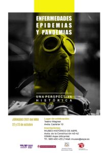 Las jornadas se desarrollarán el viernes por la tarde y el sábado mañana y tarde con ponencias a cargo de especialistas e investigadores universitarios. Las charlas desarrollarán aspectos tanto de la pandemia actual de la Covid 19 como de precedentes históricos como la Peste Negra de 1348 y su reflejo en el cine. También habrá visiones sobre la enfermedad y las epidemias desde el punto de vista de la arqueología y del arte. Además se recorrerán diversos periodos históricos que incluyen la antigüedad o el mundo contemporáneo. Como cierre, el cronista oficial de la Villa de Aspe, Gonzalo Martínez, ofrecerá una conferencia acerca de los brotes epidémicos en Aspe y sus medidas paliativas.