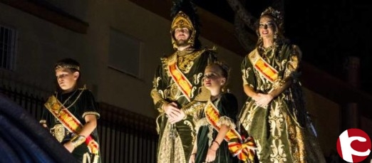 La comparsa de Cristianos Estudiantes de Aspe junto al Reinado fueron los encargados de cerrar la Entrada Cristiana, el último desfile de 2015. Los Reyes adultos y los infantiles llenaron con su boato las calles aspenses y mostrando el poder de sus tropas, que arrebataron el domingo el castillo a los de la media luna, tras un intenso parlamento, donde apareció de forma esporádica la lluvia.
